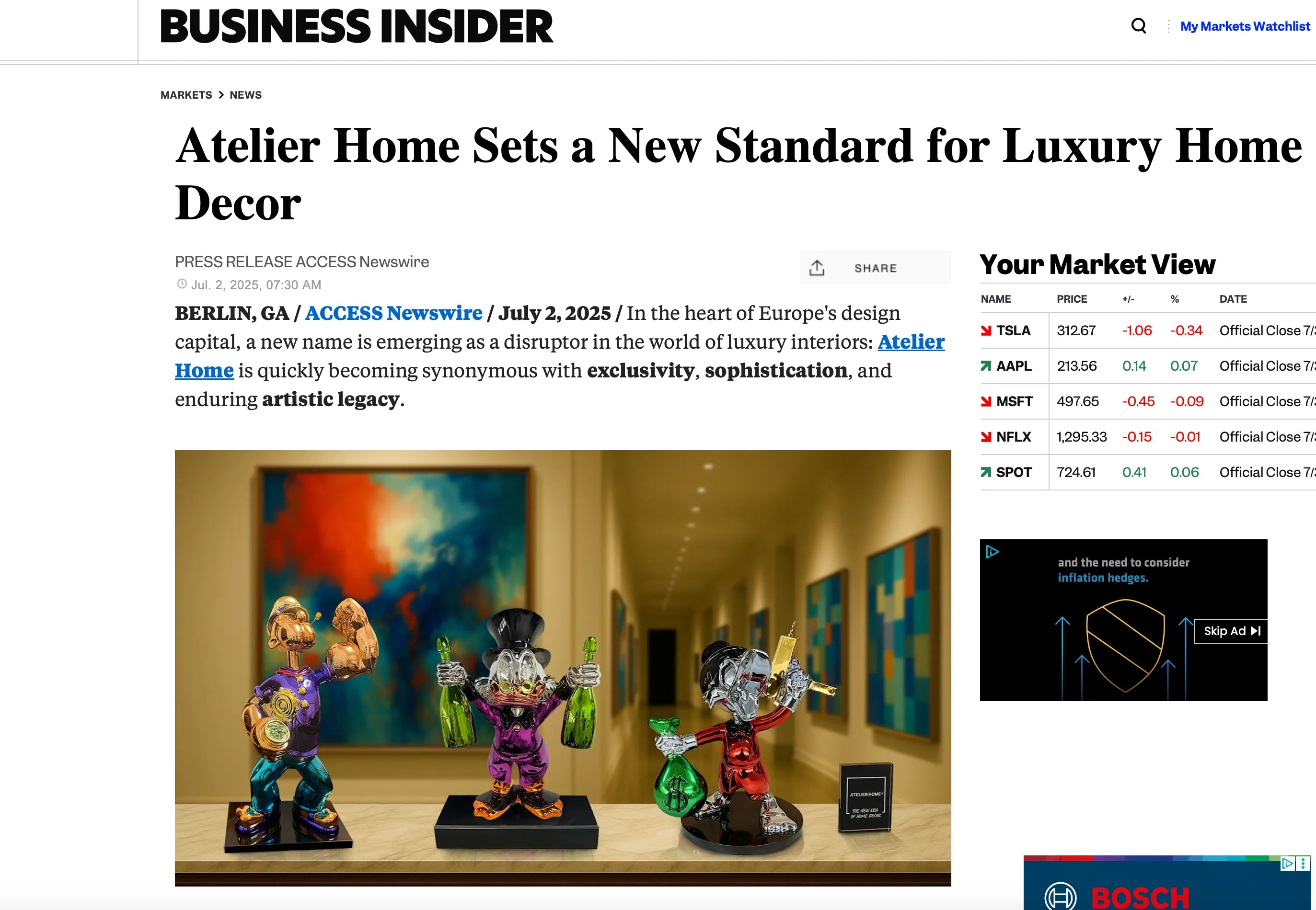 Atelier Home is redefining modern luxury living—one detail at a time. Recognized by over 400 major news outlets worldwide, our brand has become synonymous with timeless elegance, curated craftsmanship, and elevated interiors that tell a story. From Elle Decor to Architectural Digest, Forbes to House Beautiful, Atelier Home continues to capture the attention of discerning homeowners and design enthusiasts alike.
